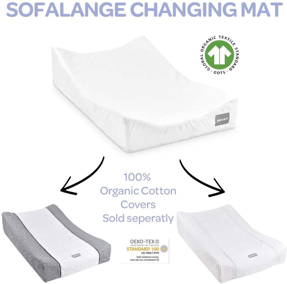 Anatomiczny miękki przewijak Sofalange francuskiej marki BEABA to innowacyjne rozwiązanie, które zapewnia maluszkowi jak największy komfort, a rodzicowi – poczucie spokoju i lepszy kontakt z dzieckiem podczas codziennych czynności pielęgnacyjnych. Materac jest lekki, przyjemnie miękki, łatwy do przenoszenia, przede wszystkim zaś wykonany pianki o unikalnym, anatomicznym kształcie, która dopasowuje się do ciała niemowlęcia, tworząc formę pochyłą do środka. Pierwszy materac Sofalange wykonano w 2013 r. Obecnie jest to już opatentowana koncepcja, która przeszła wiele testów, a także zdobyła złoty medal na prestiżowym konkursie wynalazków – Concours Lépine. Pochylenie pod kątem 16o gwarantuje nie tylko optymalny komfort, ale również korzystne ułożenie maluszka, dobre dla kręgosłupa, bioderek oraz narządów wewnętrznych, ograniczające m.in. refluks żołądkowo-przełykowy. Taka pozycja to także bezpośredni kontakt wzrokowy i zachęta do interakcji rodzic-dziecko. Materacyk wykonany jest z gąbki, która pracuje, ale się nie odkształca i zawsze wraca do swojego pierwotnego kształtu. Jej wysoka wytrzymałość zapewnia trwałość i najwyższą jakość produktu. Nieprzemakalny pokrowiec ochronny, w który wyposażony jest przewijak, można prać w pralce, co umożliwia utrzymanie go w higienicznej czystości. Wykonany jest z materiałów z certyfikatem Oekotex Class 1, potwierdzającym brak substancji szkodliwych dla skóry.