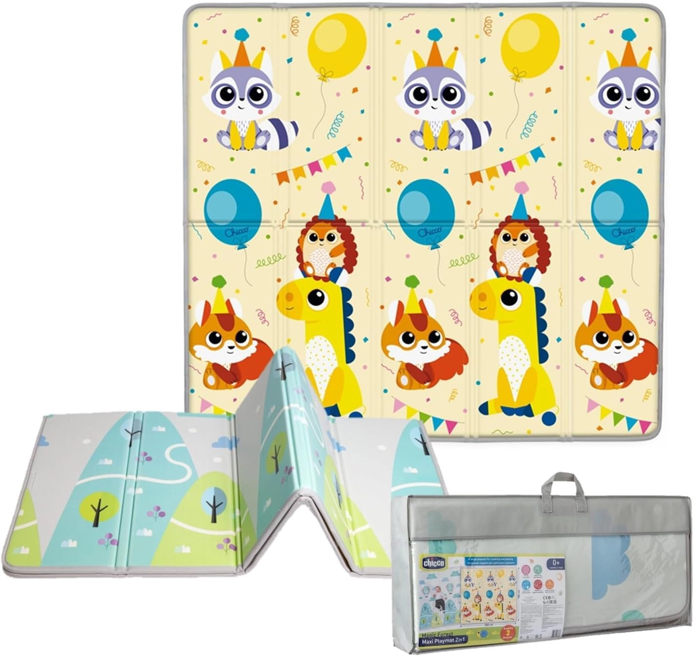 - Duża mata do zabawy Chicco zapewnia bezpieczną zabawę. Z kolorowymi ilustracjami po obu stronach, które pobudzają ciekawość i wyobraźnię dziecka.