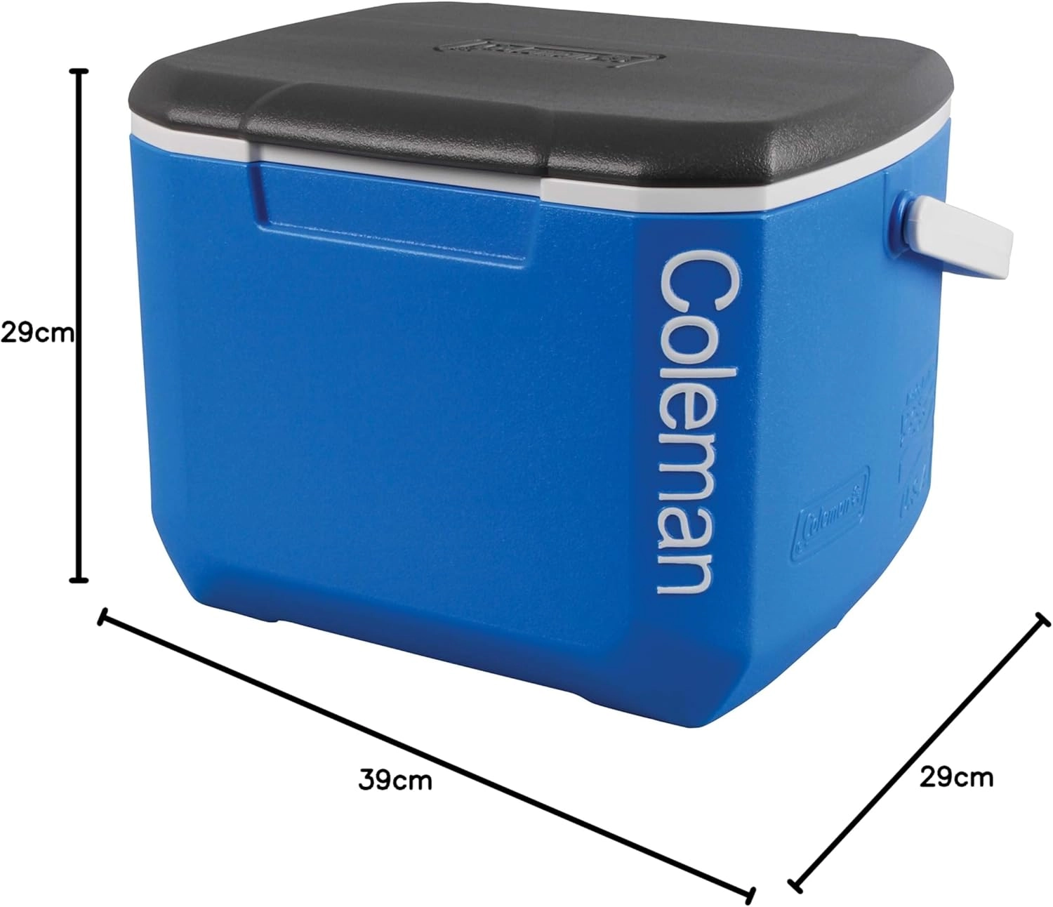 - Wymiary (wew. / wew. ): 39 x 31 x 27 / 32 x 25 x 21 cm. Waga 2,5 kg. Materiał (wew. / cal. Polietylen o wysokiej gęstości (HDPE), bez BPA, izolowana pianka poliuretanowa (PU). Pojemność 15 l. Zatrzymywanie lodu: 1 dzień.