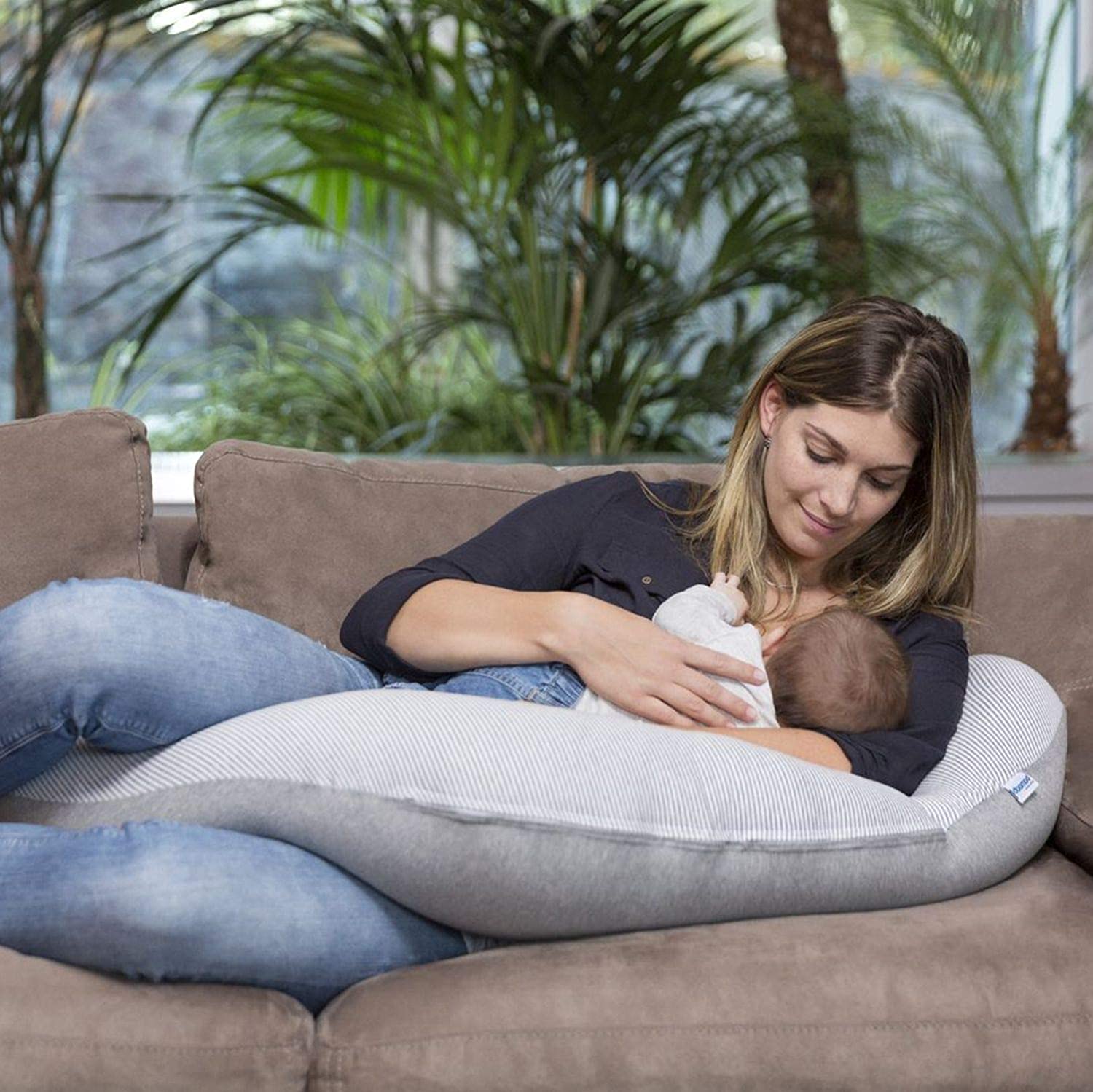 Niezrównany komfort od ciąży do karmienia piersią z poduszką ciążową Doomoo! Poduszka do karmienia Doomoo jest wszechstronna i rośnie wraz z dzieckiem. W czasie ciąży może odciążyć plecy, nogi lub brzuch. Możesz wygodnie odpoczywać na kanapie w ciągu dnia i cieszyć się spokojnym snem w nocy. Poduszka Doomoo dopasowuje się do każdej pozycji dzięki wydłużonemu kształtowi, wypełnieniu z ultracienkich mikrokulek i elastycznej bawełnie organicznej. Po porodzie poduszka Doomoo będzie Ci towarzyszyć podczas karmienia piersią lub podawania dziecku butelki. Zapewnia dziecku wygodną pozycję. Jest na odpowiedniej wysokości, podpierając ramię, co odciąża plecy. Praktyczną poduszkę do karmienia Doomoo można zdejmować i prać w pralce. Za co ją pokochasz? • Ultracienkie mikrokulki dla redukcji hałasu i większego komfortu. • Ultracienkie mikrokulki dla redukcji hałasu i większego komfortu. • Miękka i puszysta bawełna organiczna, która dopasowuje się do każdej pozycji • Podtrzymuje plecy, nogi i brzuch w czasie ciąży • Utrzymuje dziecko na idealnej wysokości podczas karmienia piersią lub butelką • Odciąża plecy i ramiona rodziców podczas karmienia piersią lub butelką. • Poszewka jest zdejmowana i można ją prać w pralce (30°C). • Możliwość ponownego napełnienia (woreczek z mikrokulkami sprzedawany oddzielnie). • Poszewka wykonana jest z bawełny organicznej z certyfikatem Oeko-Tex (R). • Wyprodukowano w Europie. • Materiał: 95% bawełna organiczna i 5% elastan. • Wypełnienie: mikrokulki EPS • Pielęgnacja: Poszewka nadaje się do prania w pralce w temperaturze 30°C. - Poduszka wewnętrzna z poszewką i woreczkiem do prania w temperaturze 30°C. • Środki ostrożności: Nie nadaje się do suszenia w suszarce bębnowej. • Wymiary po złożeniu: 70 x 45 x 15,5 cm. • Całkowita długość poduszki: 180 cm