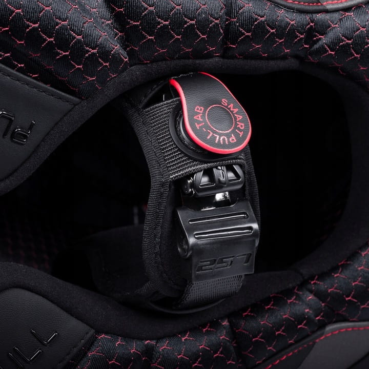 Bezpieczeństwo: wypełnienie EPS o zróżnicowanej gęstości, zapięcie mikrometryczne, wzmocniony pasek, (Emergency Release System) czyli poduszki policzkowe mogą zostać usunięte przez osobę udzielającą pomocy
