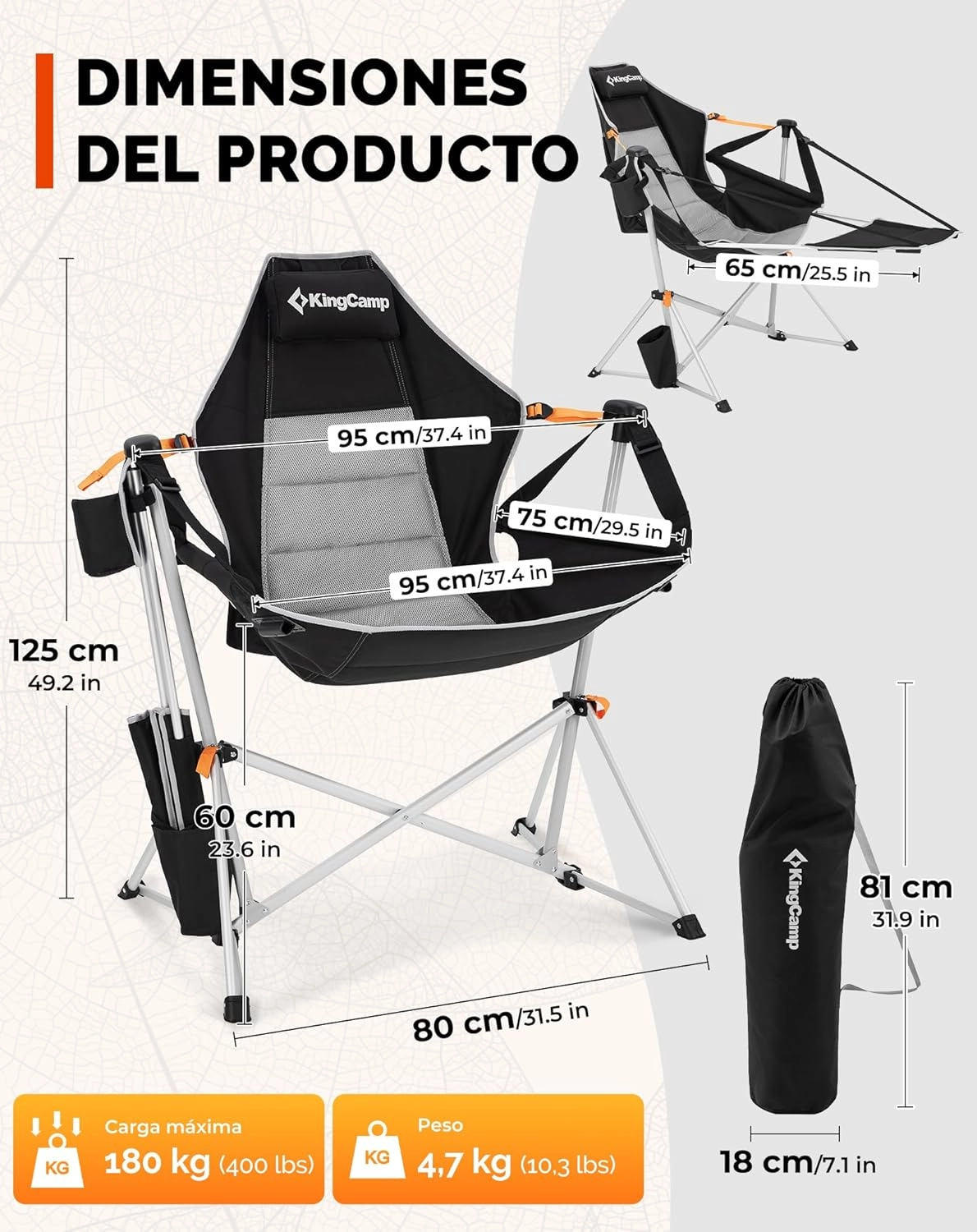 Ten nowoczesny składany fotel hamakowy jest połączeniem komfortu leżaka, fotela bujanego i klasycznego krzesła turystycznego.