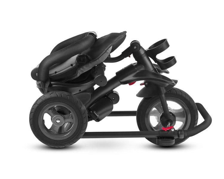 Tris został wyposażony w niezwykle wygodny mechanizm składania do kompaktowych rozmiarów. Rowerek po złożeniu zajmuje bardzo niewiele miejsca i doskonale nadaje się do podróży, a po dotarciu na miejsce w kilka sekund jest gotowy do jazdy – wszystko bez użycia żadnych narzędzi.
