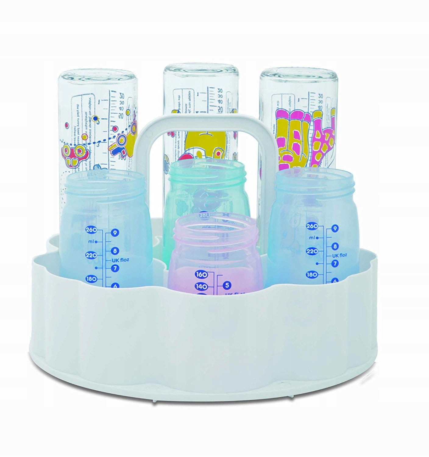 Mieści do 7 butelek z szeroką szyjką lub 9 butelek standardowych.