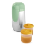 Pojemnik termiczny Stay Warm na żywność dla niemowląt utrzymuje temperaturę zawartości do 5 godzin. Pojemnik termiczny jest wyposażony w dwa pojemniki o pojemności 250 ml i praktyczną torbę na sztućce. Pokrywka może być używana jako miska do karmienia i tym samym ułatwia karmienie w podróży. Dzbanek termiczny może być również używany do ciepłych i zimnych potraw oraz orzeźwiających napojów dla całej rodziny.