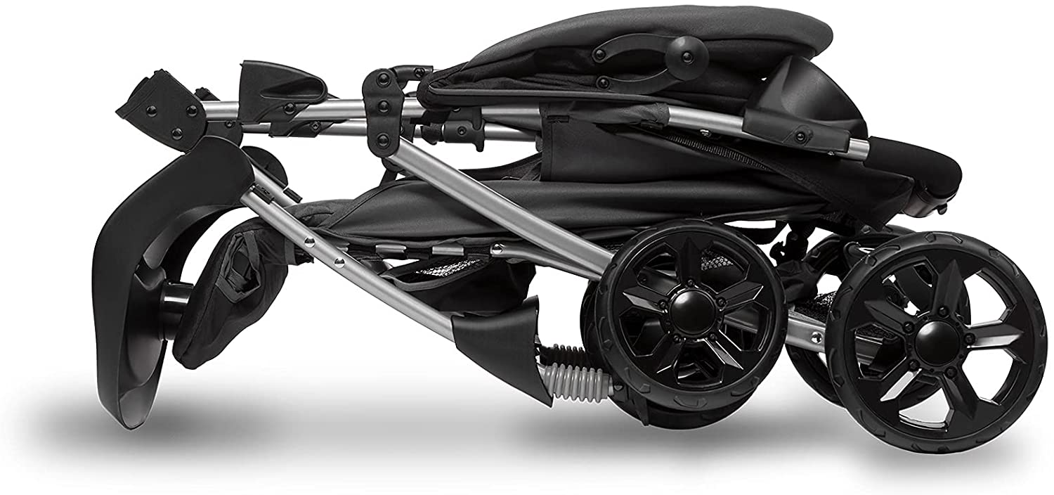 Wózek Emma Plus w prosty sposób można złożyć do kompaktowych rozmiarów. Złożenie wózka zajmuje kilka sekund, a konstrukcja została tak zaprojektowana, żeby było możliwe to do zrobienia jedną ręką.