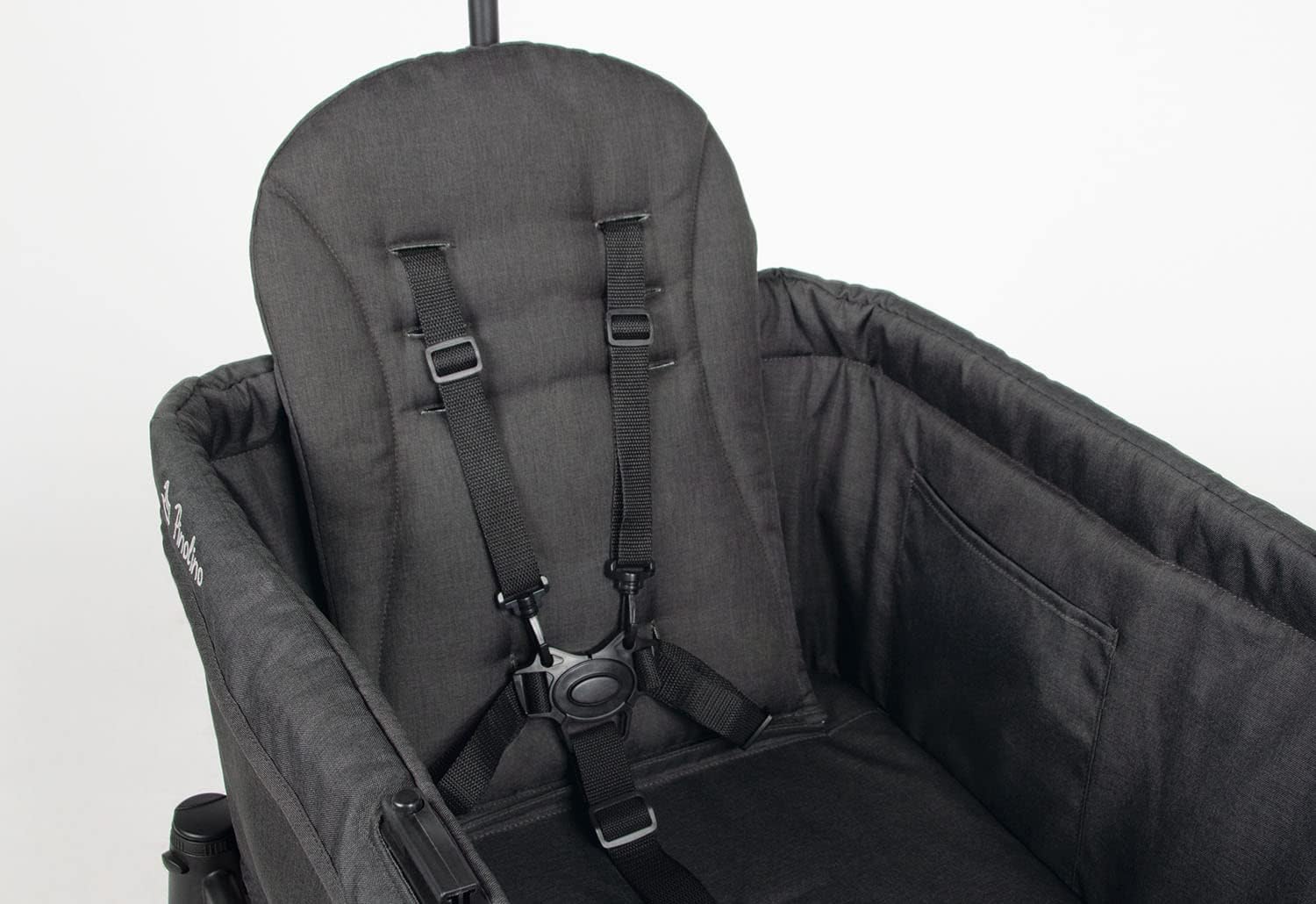 Siedzisko do składanego wózka Cruiser z 5-punktowym pasem, wypełnienie 100% polietylenu, materiał 100% poliester, tkanina, antracyt melanż. Wymiary szer. 32 x gł. 3 x wys. 48 cm