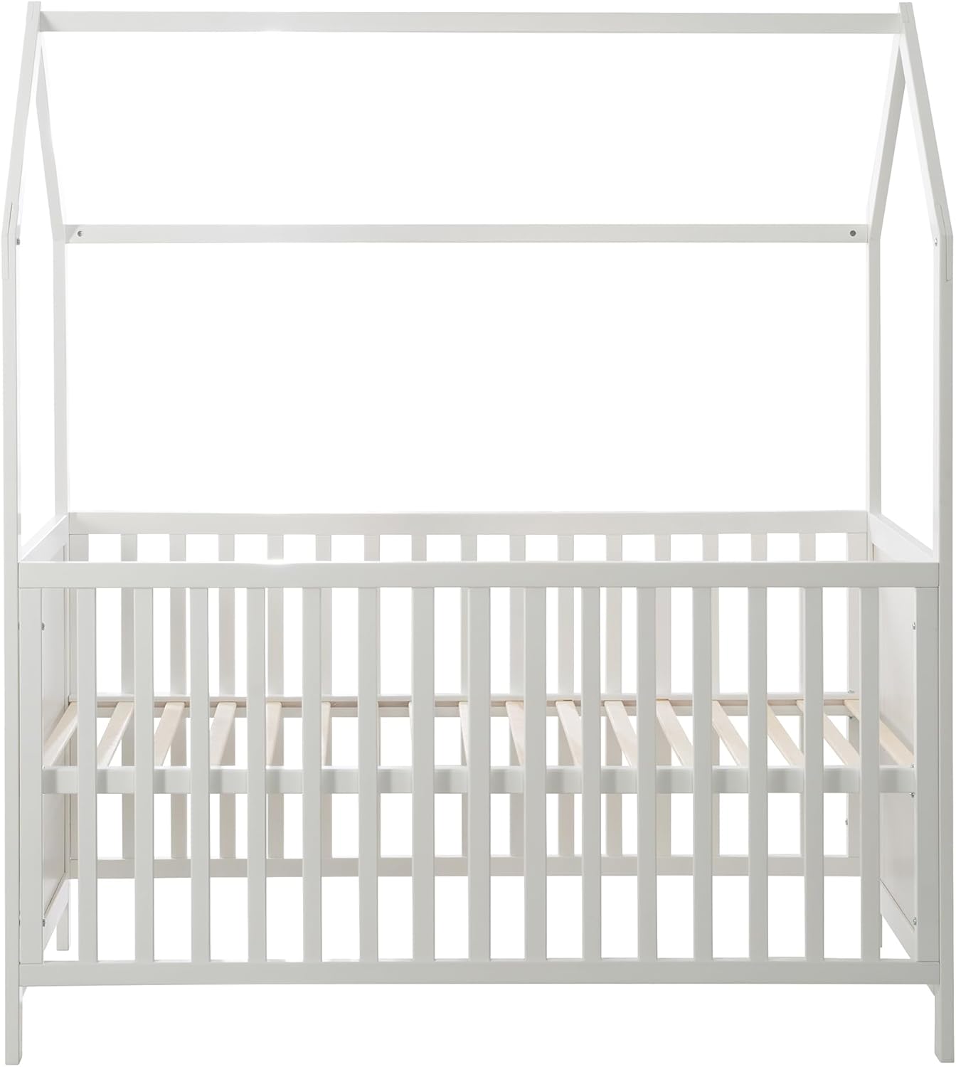 roba house bed 70 x 140 cm, łóżko dziecięce combi w stylu house, białe, 3-stopniowa regulacja, wysuwane szczebelki, możliwość przekształcenia w łóżko młodzieżowe